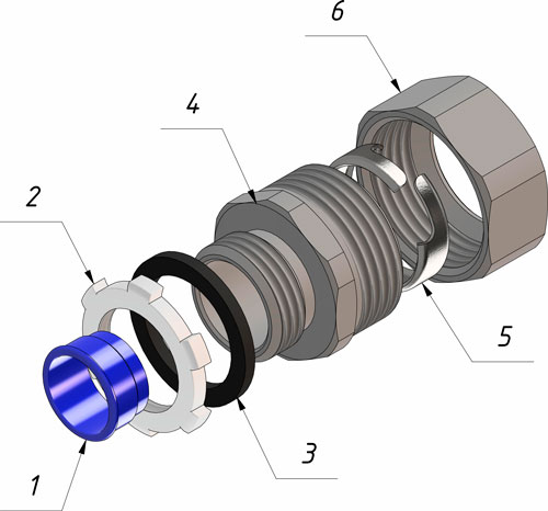 Муфта АТК - адаптер труба-корпус цанговый применяется для ввода проводов и кабелей в оболочки электротехнических изделий при выполнении электропроводок с применением стальных ВГП труб (ГОСТ 3262-75).